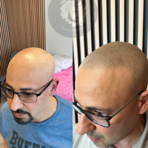 While SMP is considered a low-risk procedure, itโs essential to be aware of potential side effects. some individuals may experience temporary redness, or discomfort in the treated area immediately after the procedure. However, these side effects typically subside within a few days and can be easily managed with proper post-treatment care. At Gentlemenโs Scalp Prestige clinic, our practitioners thoroughly assess each clientโs medical history and discuss any potential risks or concerns before proceeding with SMP treatment.
